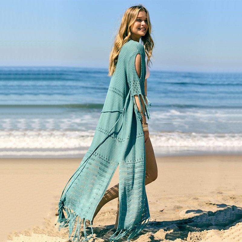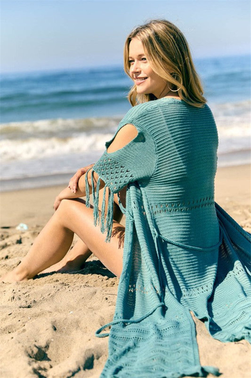 Remark: BEACHWEAR ONLY Material: Knitted/Crochet Beachwear Size Chart: Length 123CM, Tassle 15CM, Shoulder 38CM, Sleeves 11CM