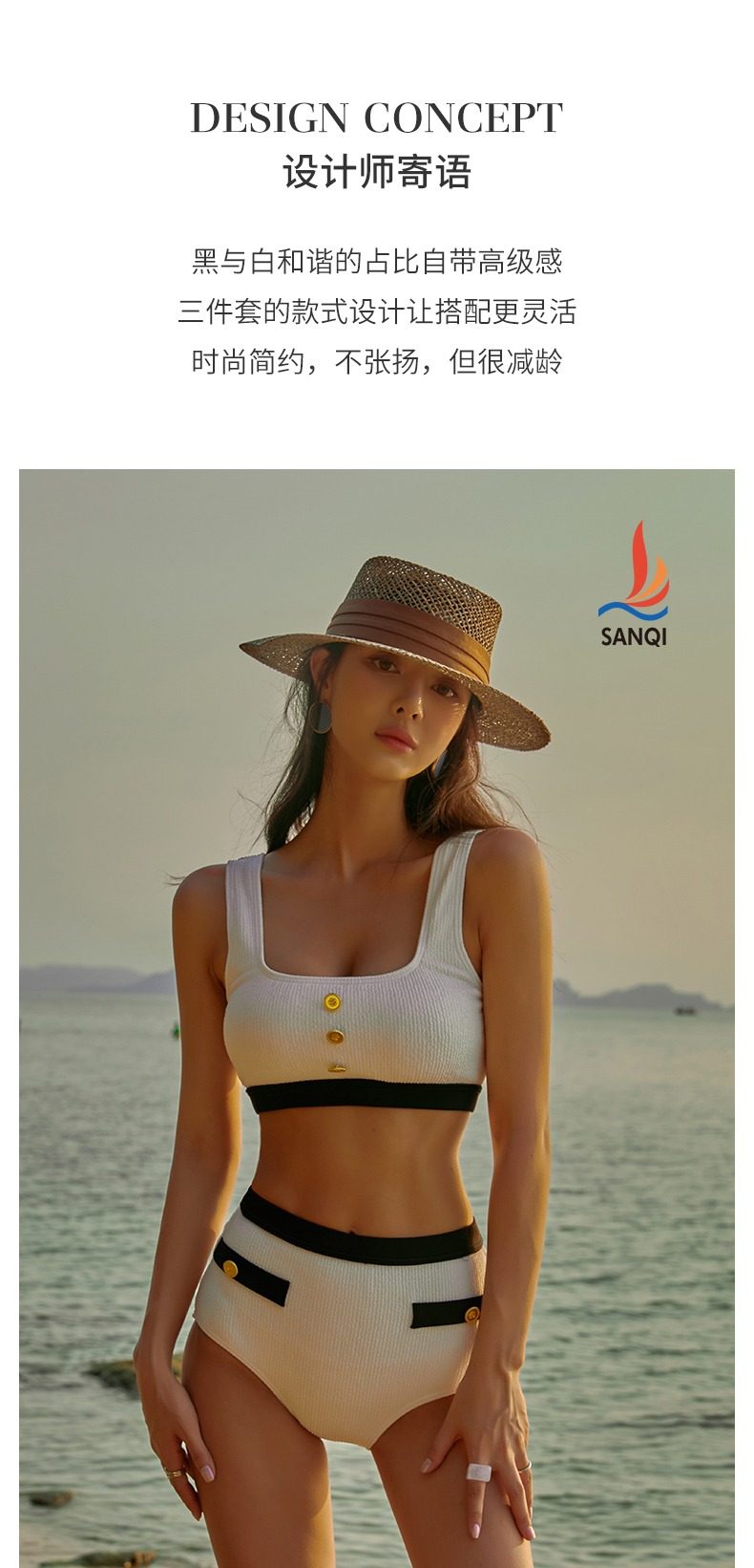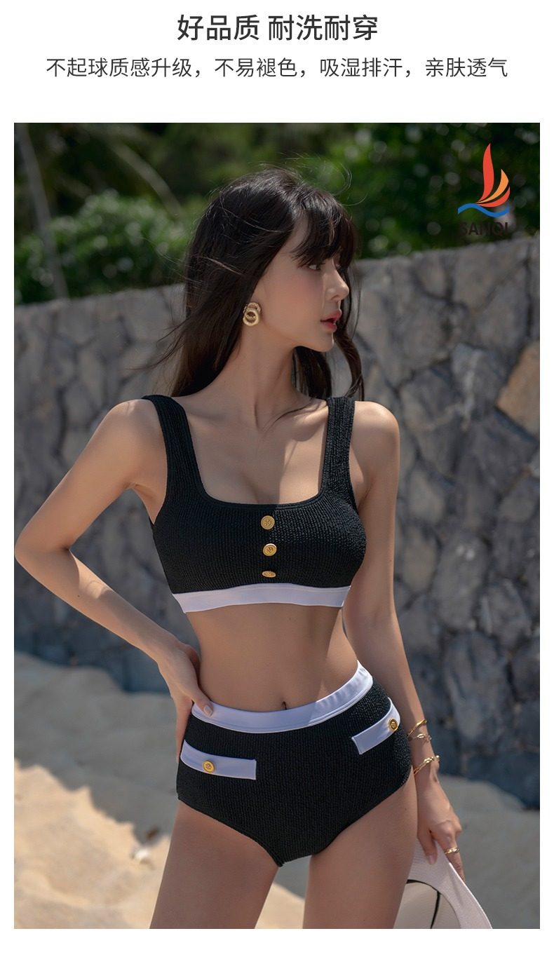 Remark: 3 piece set - no underwire; with chest pad. Can add padding for push up.TAKE NOTE OF MATERIAL.
